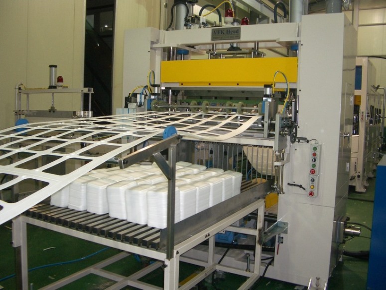 Экструдер (листы), вакуум-формовщик, штамповочный пресс, упаковщик. Стоимость 5-15 млн руб., окупаемость 1-2 года.