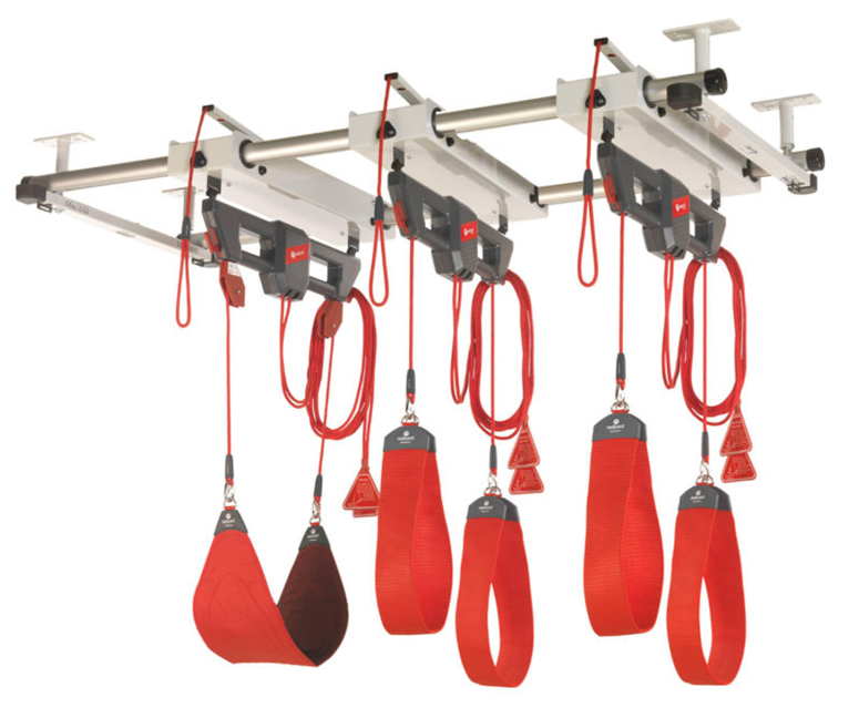 При покупке или аренде комплекса в его состав включают потолочные или напольные крепления, набор строп, карабинов, манжет и платформ для разных зон тела.